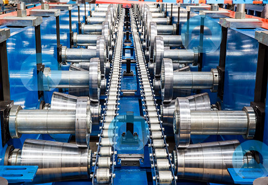 TF糧食提升機外殼生產(chǎn)線生產(chǎn)的外殼板,在線實現(xiàn)各種連接孔、窗口、缺口自動生產(chǎn),長度、寬度、高度可無級調(diào)整,整線只需操作員一名,生產(chǎn)規(guī)格調(diào)整快捷,生產(chǎn)效率高。采用成型后整體升降沖缺口,保證制件尺寸精度高。