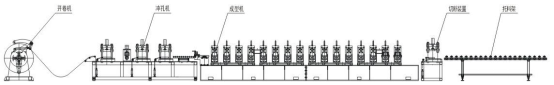 電氣罩殼自動生產(chǎn)線該生產(chǎn)線由上料小車、開卷機(jī)、入料導(dǎo)正、沖孔、切斷、輥壓成型機(jī)、成型剪、自動碼垛、液壓系統(tǒng)、電氣控制系統(tǒng)組成。該生產(chǎn)線在線不停機(jī)沖孔、不停機(jī)切斷